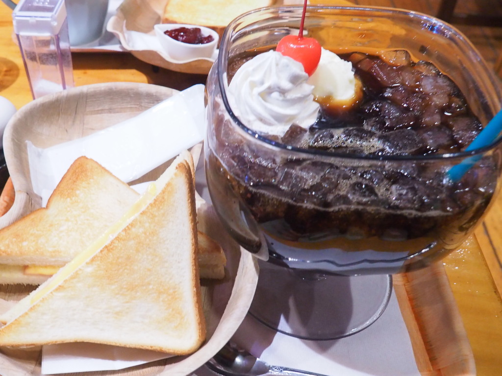 「コーヒーフロート」にハムチーズトーストとケーキを頂きました。